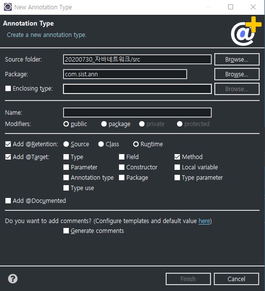 이클립스 화면 File>>new에서 annotation 생성
